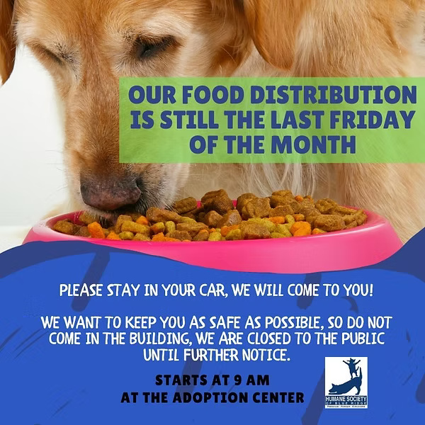 We are still distributing food on the last Friday of the month at the trailer, but please, don’t get out of your car! We will come to you! Any donations for this program would also be greatly appricated so we can get food out to as many people and pets as possible. Thank You!